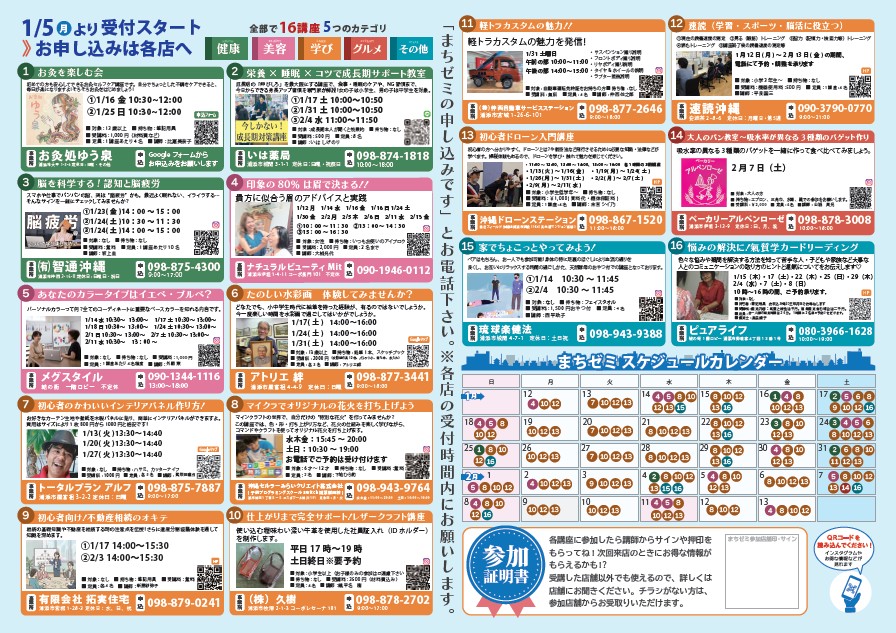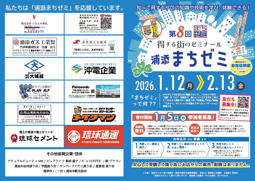 浦添市内16の店舗や会社で『第8回浦添まちゼミ』行われます。